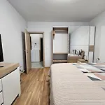 With a sofa set and a work desk, Brand New Apartment With Free Parking Near City Center provides a cable satellite TV, ironing facilities, and comforts including climate control. A separate toilet and a shower are also featured in the bathroom. Furthermore, hairdryers, complimentary toiletries, and shower caps is available.